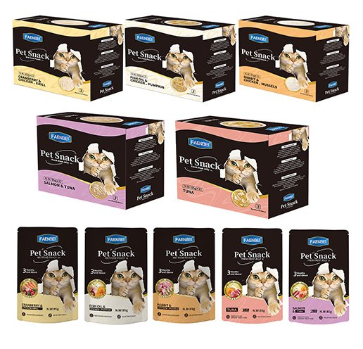 | FSP02-4 Pet Snack Wet Food Pouch-Tuna | Raw material Purified Water, Tuna, Fish Oil, Pumpkin Additives:Carrageenan,Hydroxypropyl Distarch Phosphate,Taurine,lsomaltooligosaccha-ride, Vitamin A Acetate. Vitamin B2, Niacin.Calcium D-Pantothenate, Vitamin D3 |